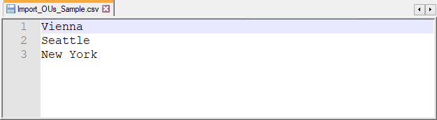 The downloaded sample file consists of a simple list of names that shall be imported as shown here: one OU in one line.