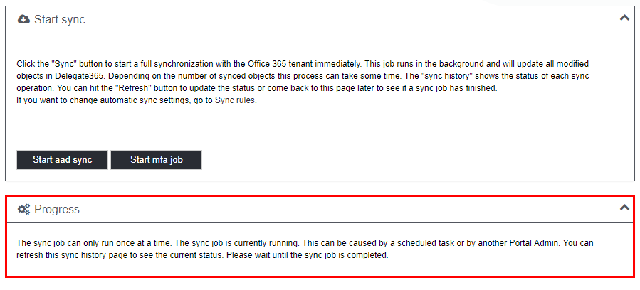 Now, the sync jobs runs only once. If an admin starts a new sync, a message appears that there’s already a sync job currently running as shown here.
