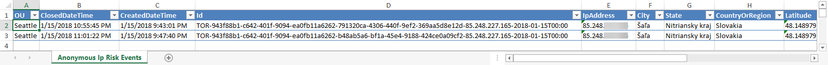 This report shows successful logins from anonymous proxy IP address that could be used to hide the real device’s IP address for malicious intent.