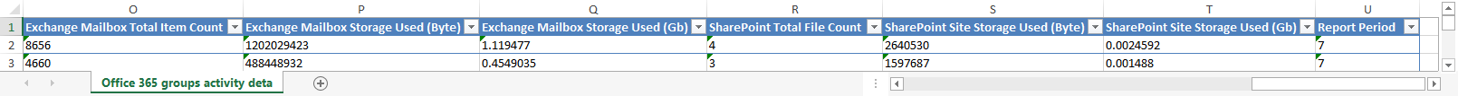 This report shows the usage of the Office 365 groups, the storage size in SharePoint, number of messages in Exchange, last activity date and more – all you need to know about your Office 365 groups.