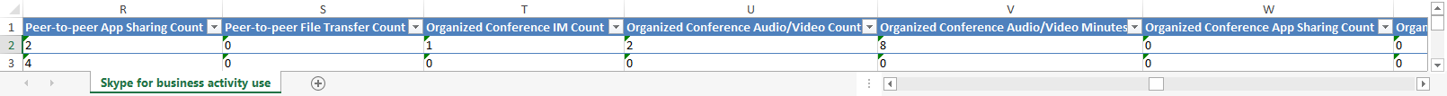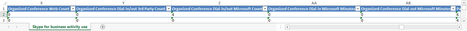 This reports shows Skype for Business statistics per user, for example the number of conferences, the sum of minutes consumed, the number and date of the last participations and much more.