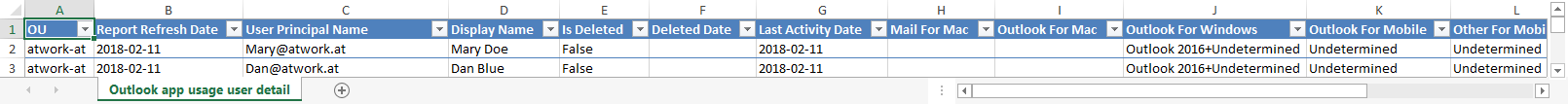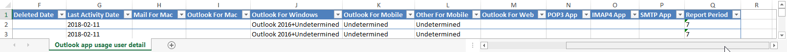 This report shows the last activity date per user and the number emails sent and received and read in the selected time period in Exchange Online.