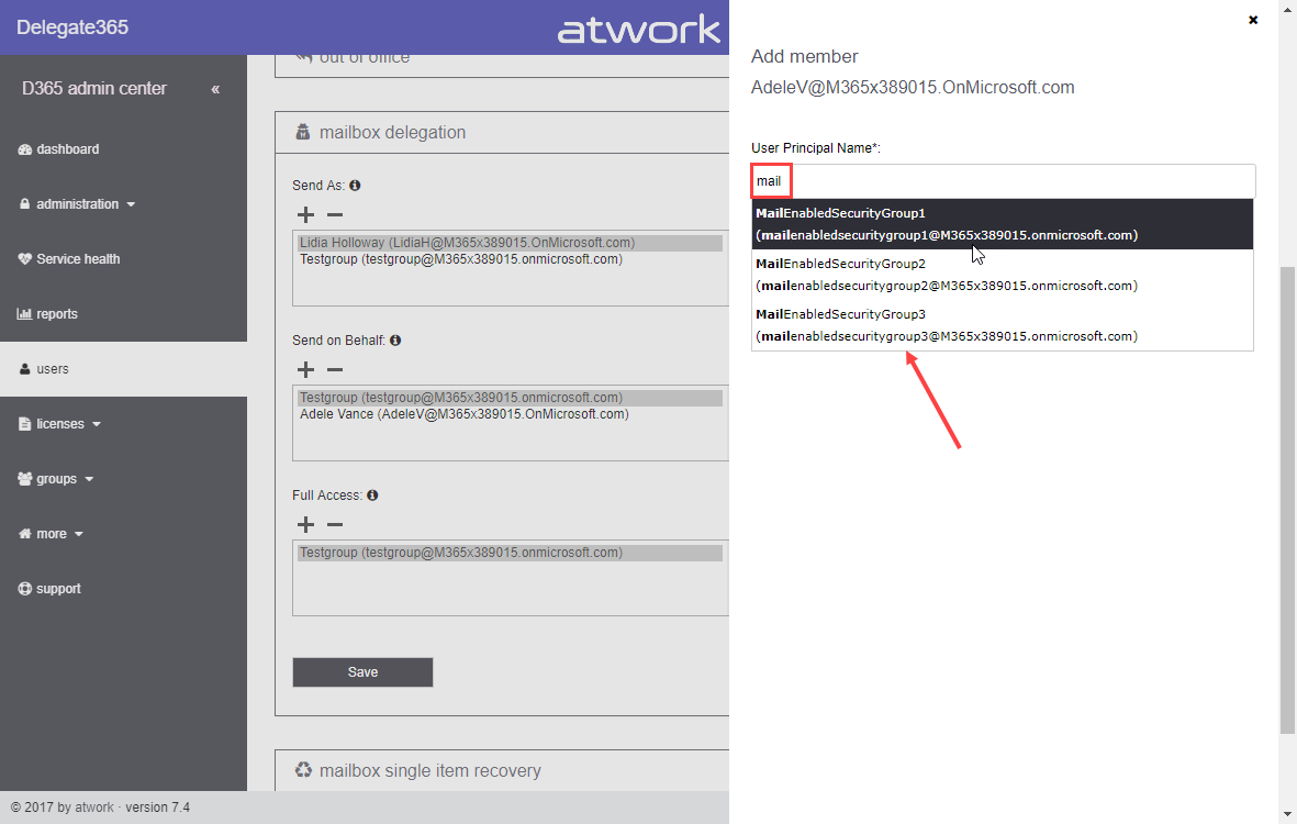 Then Excel shows just the other users and the files they have access to. Excel provides more methods for summarizing, grouping and pivoting if needed.Support for group membership: In Office 365, it’s possible to add a Mail Enabled Security Group as member to user’s mailboxes, as delegated user in Resources (rooms and equipment mailboxes) and Shared Mailboxes. This does not work for other group types (see Working with Exchange Mailboxes and Groups as members), but for Mail Enabled Security Group only. So, this feature has been added to Delegate365. With this update, it’s possible to select a Mail Enabled Security Group from the people picker as well.