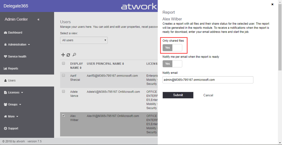 By default, the “Only shared files” switch is set to Yes.New report: Azure Active Directory Sign-in activity: As the name suggests, Admins get a report of successful and unsuccessful sign-in activities of their users for the last 30 days.