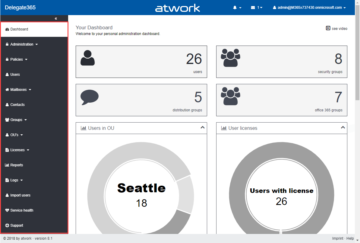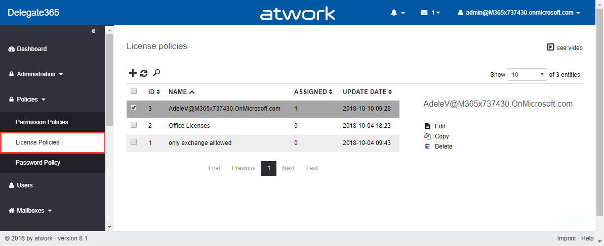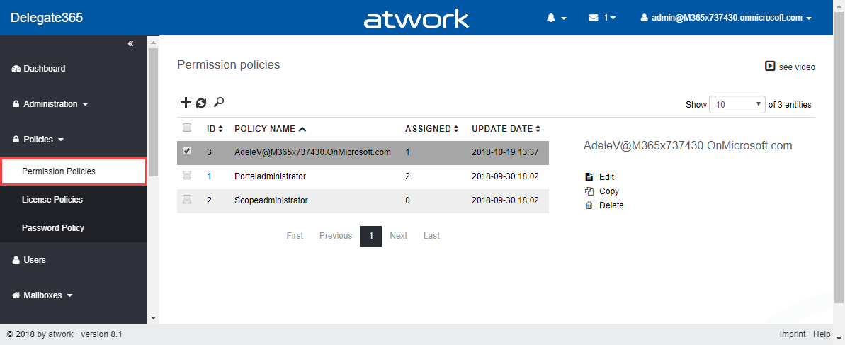 These days, the next major Delegate365 version 8.1 is released. In that new version, there are a lot of new and improved features available for all Delegate365 customers. The menu has been restructured, permission policies allow to define granular rights and license policies simplify the set of licenses for Scope Admins. Furthermore, there are a bunch of useful improvements and the Delegate365 PowerShell module is available. See the details here.
