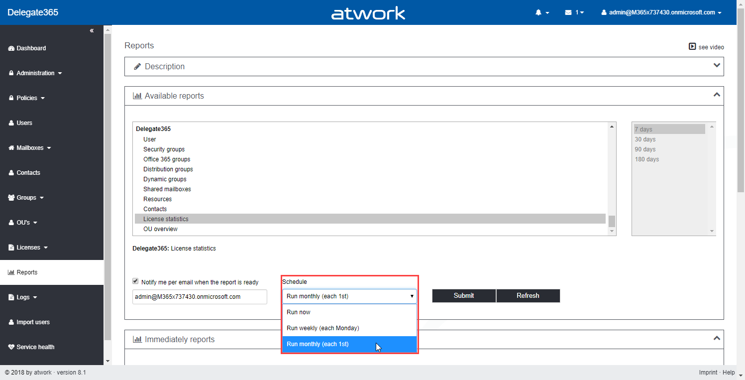 New menu: The Delegate365 modules have been grouped by topic, so e.g. all modules related to “licenses” can now be found in the menu “licenses”, makes sense, or? Pls. see the details at Menu restructuring.