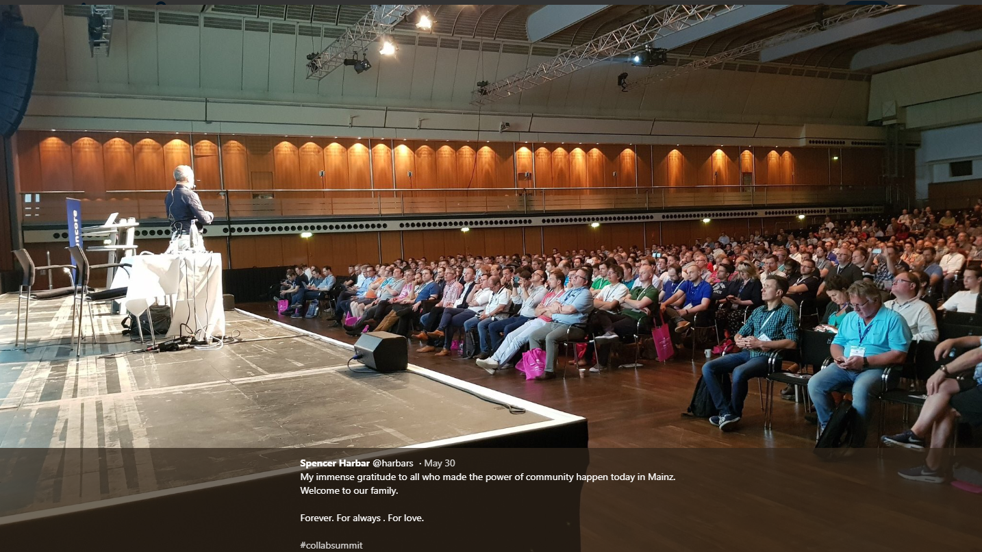 On Tuesday morning, Matthias Einig and Adis Jugo initiated the ECS Opening Ceremony: #collabsummit is a community-organized event… Thanks to the organizers Adis Jugo, Matthias Einig, Margit Jugo, Spencer Harbar, Nenad Trajkovski, and Toni Frankola and all the helping hands supporting that event!