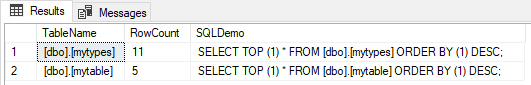 For convenience, I added a SQLDemo column to quickly get some sample data from each table if needed. So, if you need examples of the data, execute the generated SQL statements as in this sample here.
