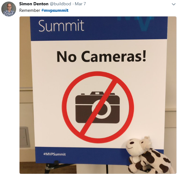 Also, for most of us, this event feels like a family reunion and we had a lot of fun, see #MVPSummit. Of course, there were the typical No Cameras! signs snapshots..
