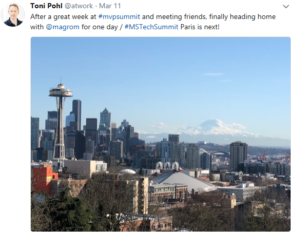 So, there were more than 2.000 MVP’s and most of the RD’s following Microsoft’s invitation to Redmond. We, @magrom and I, @atwork, could meet colleagues from all over the world in person – finally.