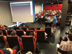 The attendees signaled their answers with arms at the “Head” or “Tails”. It was fun.