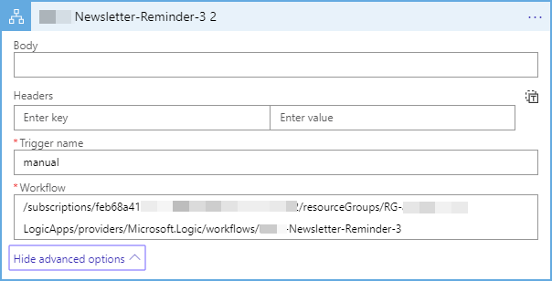 ..and pass parameters if needed. If the Logic App works with their own data, no parameters are needed.