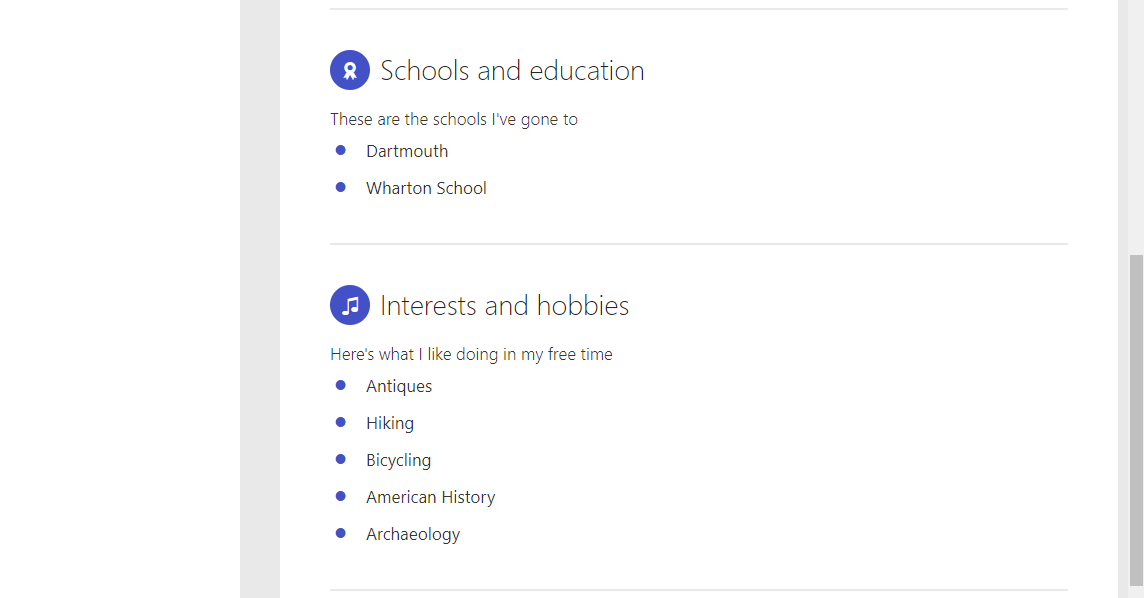 When opening the Delve app and a user profile, this looks like in a demo tenant here:
