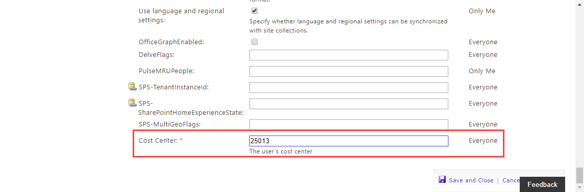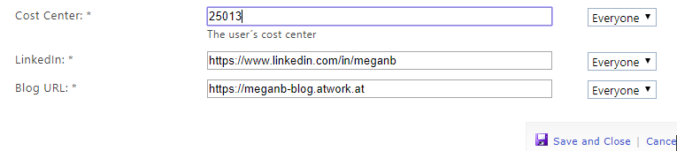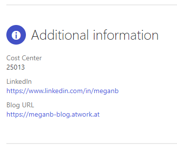 So, we can add data for a user, in our sample, we add a cost center at the end of the user profile page for Megan.