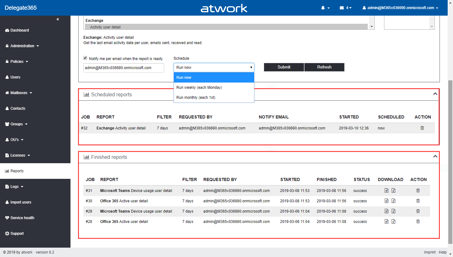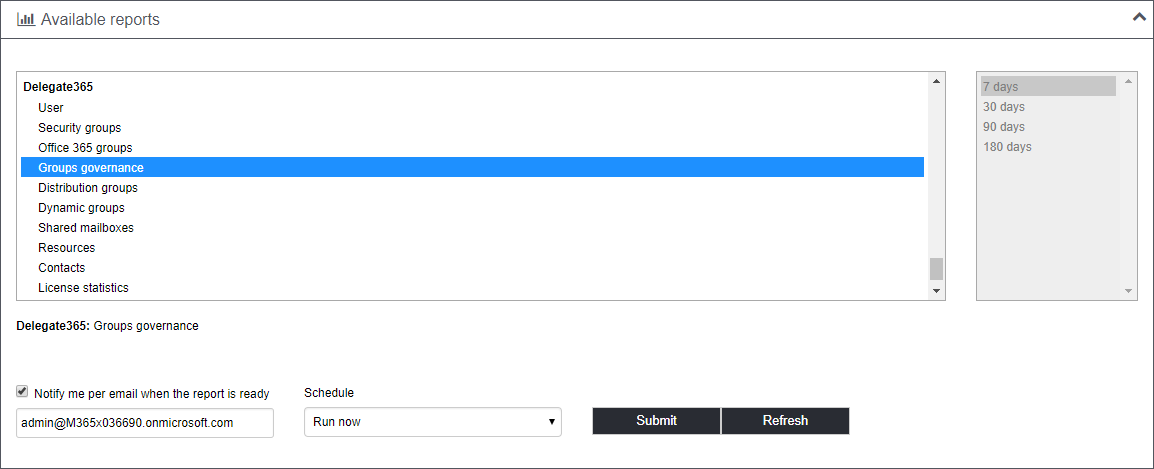Important: Due to the nature of Office 365 groups, only users can be added to an Office 365 group, no other groups.Reports: The different boxes were summarized. When a report is submitted, now there’s one box Scheduled reports that shows reports waiting for generation, and one single box showing all Completed reports, regardless when they are scheduled.