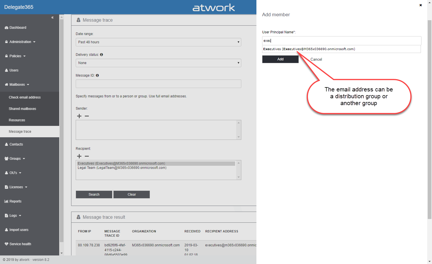 So, the Groups Governance report informs about the number of group owners (to comply with any organization policies), external guests, members and group properties as the visibility and classification (if set) and the renew date and the type of a group.Message Trace: This has been extended, so that Distribution Groups, Shared Mailboxes, Resource Mailboxes and Contacts can be used.
