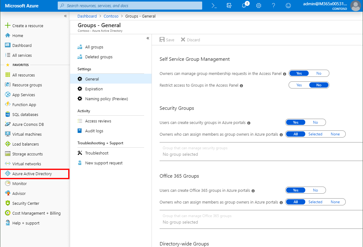 Set general group settings in the Azure portal