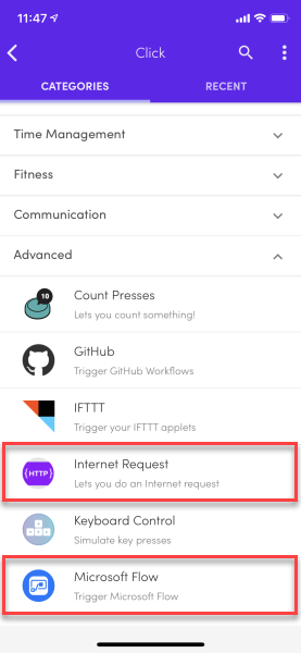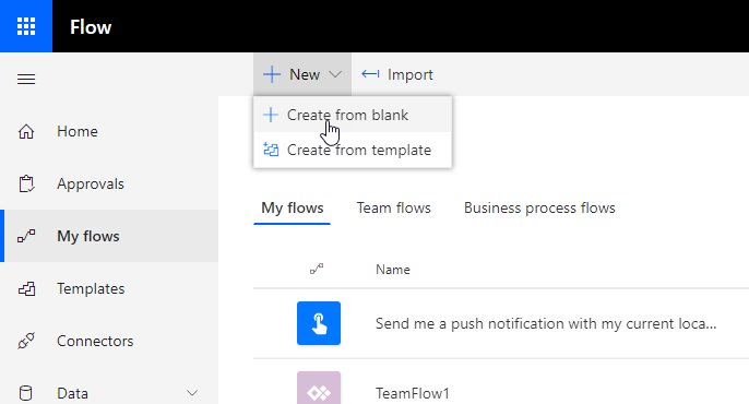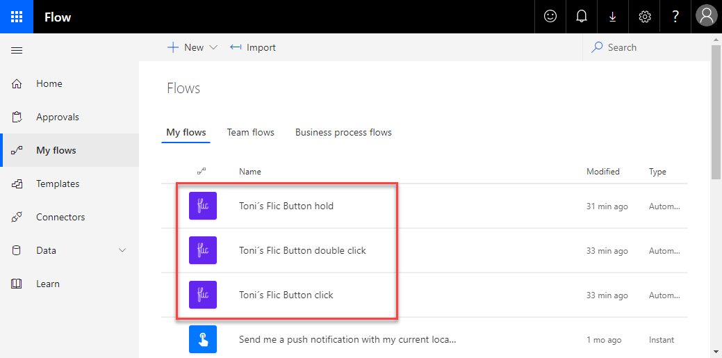 On the computer, I signed-in to flow.microsoft.com and created new flows. This can be done from the Flic templates, or by doing it manually, as I did.