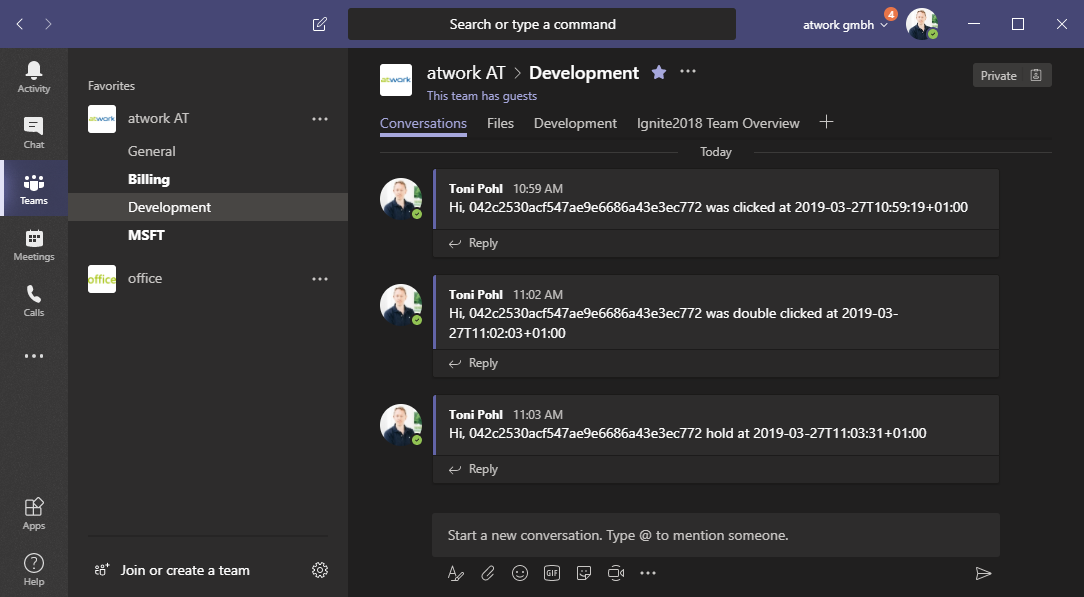 It´s amazing, that the message appears in Teams in about two seconds. So the runtime is really fast and immediately.