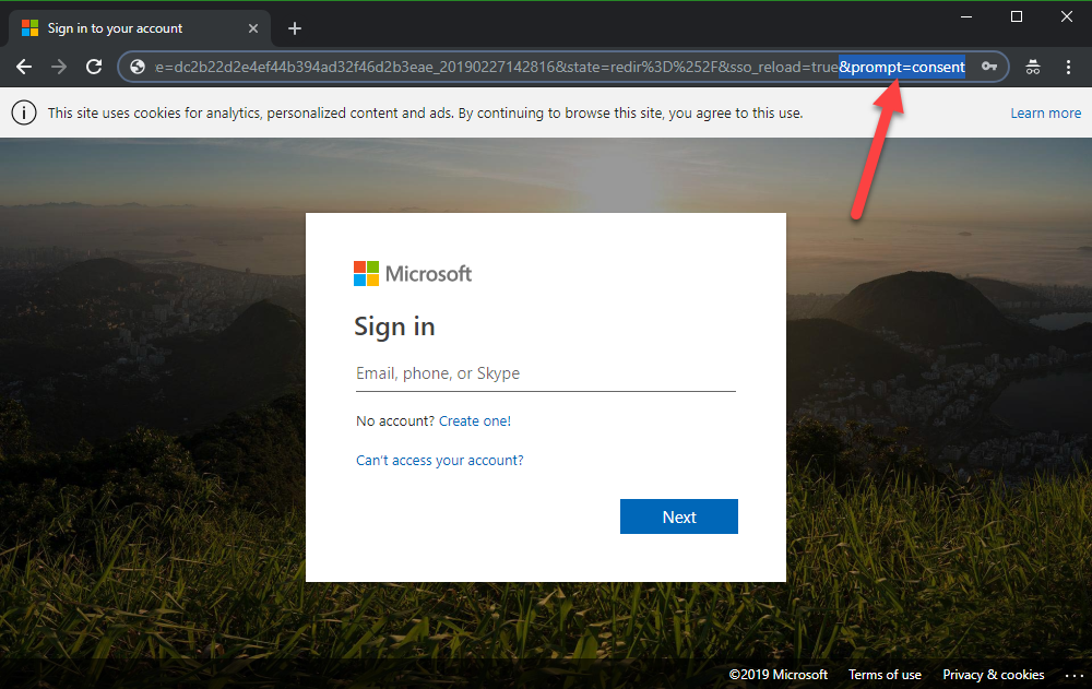 https://login.microsoftonline.com/common/oauth2/authorize?….&prompt=consent