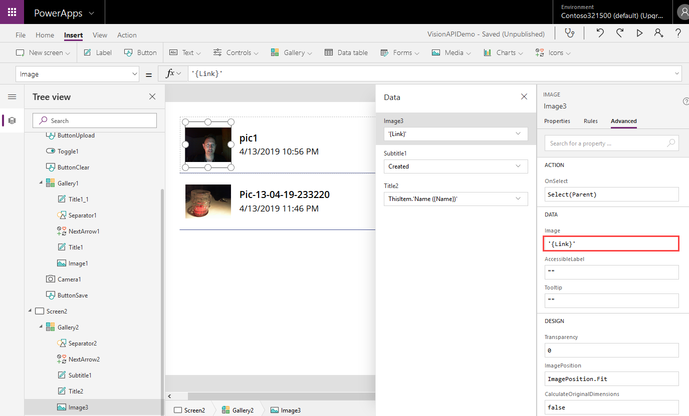 Now, TextInput1.Default needs to show variable title and Image2.Image needs to show picture in their visualization properties as here.