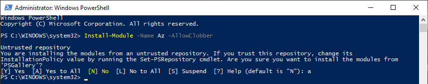 …and install the Az module from the the PowerShell Gallery with the that command:
