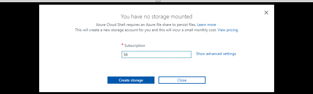 After selecting PowerShell, a subscription must be selected for a storage (see https://aka.ms/file-pricing).