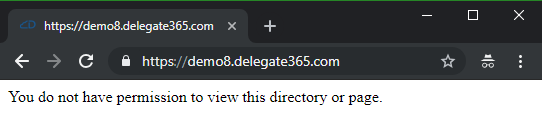 Ensure that you have the correct Delegate365 URL, especially when using bookmarks! Type or paste the URL into the address field.