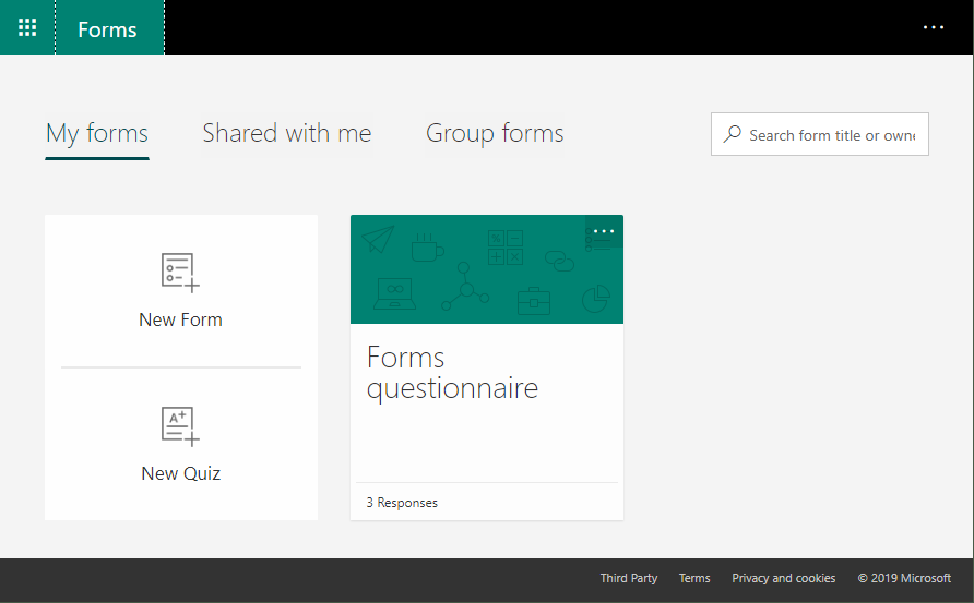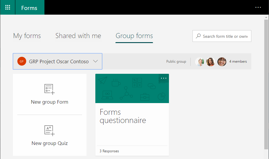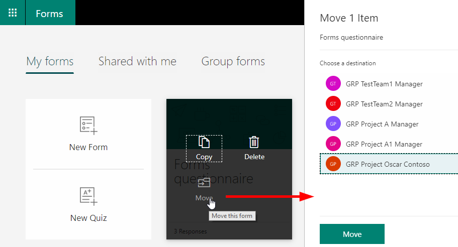 The form disappears from “My forms” and shows up in the “Group forms” in the selected Office 365 group.