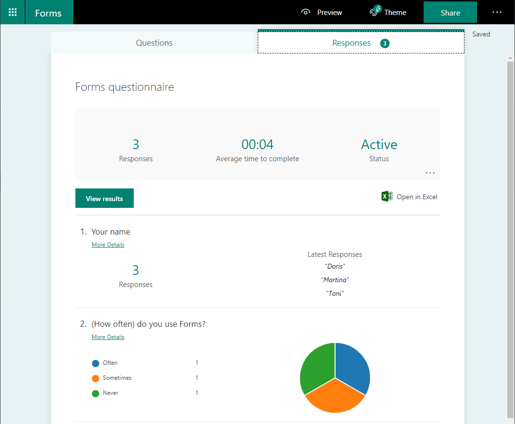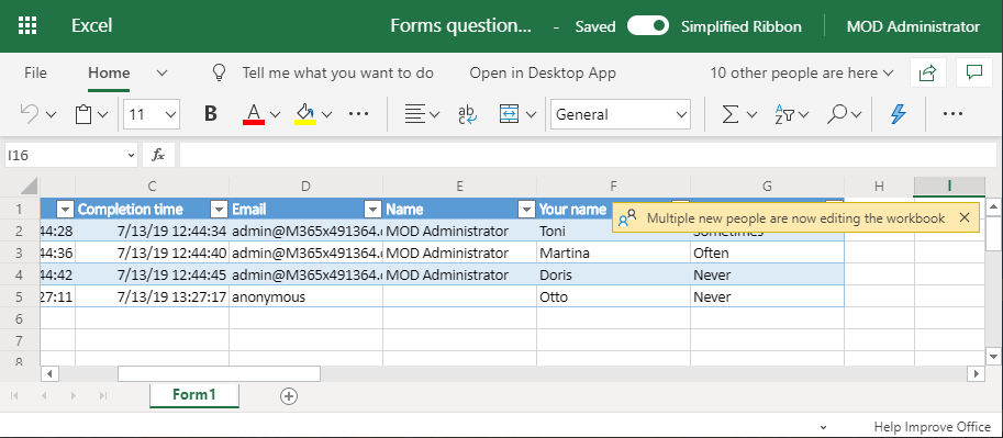 I think that’s a big advantage when working with Microsoft Forms to be able to access the result file directly.