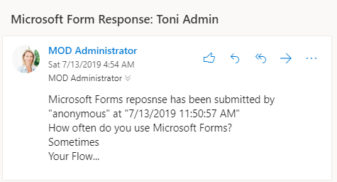 Microsoft Forms are a quick way to create simple web forms for surveys, quizzes and forms. While it is easy and quick to develop forms, you can not upload files and prefill forms. Currently, for such features you have to dodge on PowerApps. Anyway, Forms provide a great tool for simple scenarios, also combined with Flow. I hope this short article helps to create useful and quick forms for various requests.