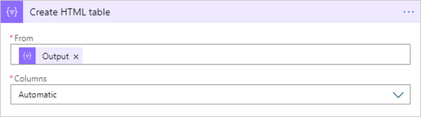 Here, we use the Ouput from the Select-action before with body(‘Select’) as input for this action and we use automatic columns - we already defined that in the action before.