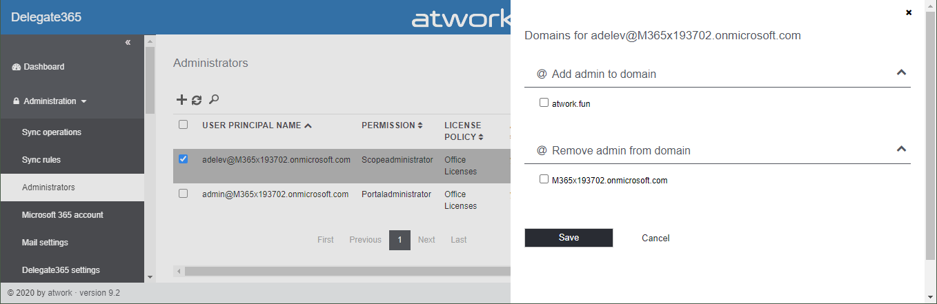 We think, this makes sense, because admins shall not be able to manage users with domains they shall not be able to use for their own objects. This sample shows the new behavior available with Delegate365 v9.2 (along with many other new features). Stay tuned!