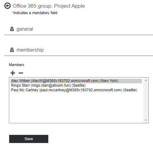 When clicking the Save button and confirming the message, these users are added as members to that group.