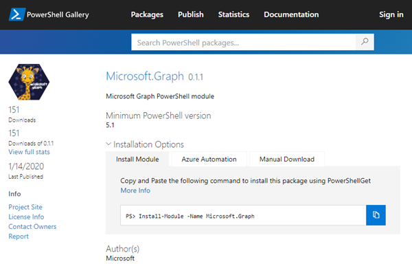 Downloading and installing the modules can take some minutes. Note that you can also install the module for the Graph Beta endpoint by using Install-Module Microsoft.Graph.Beta.