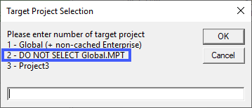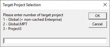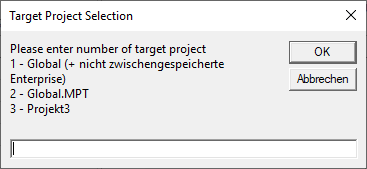 If modules are to be updated, the code below must not be in the target project. In this case, the list of possible target projects contains a note.