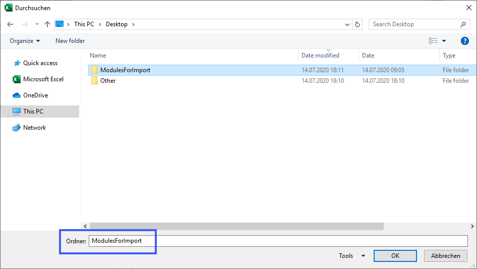 vbCrLf + "3 - Export only modules from folder and import these", _