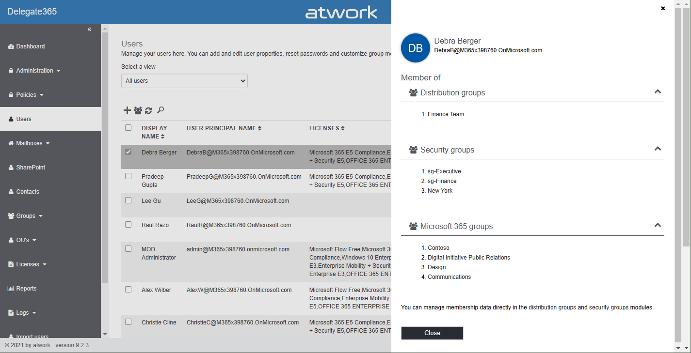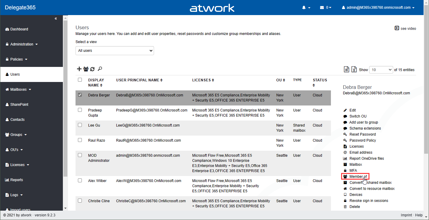 If the user already was a member of a group, this is ignored.Check group assignments: As before, admins can check existing group assignments anytime in the Users list as well by opening the “Member of” function.