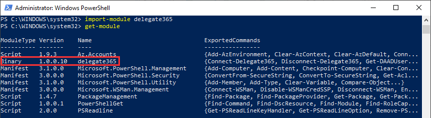 First, ensure you have the latest version of the Delegate365 PowerShell module installed. Check with