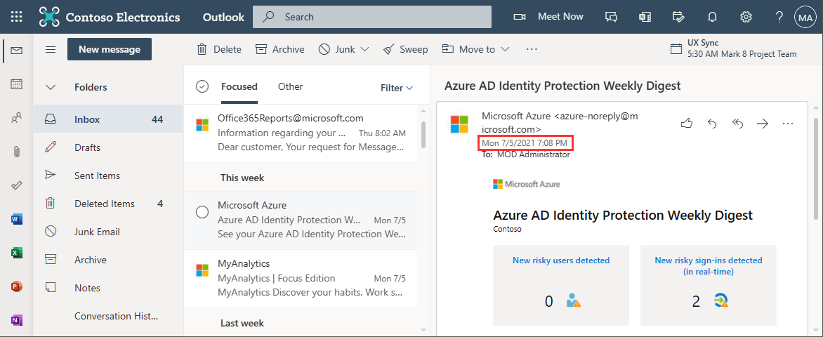 admin@tenant.onmicrosoft.com Azure AD Identity Protection Weekly Digest Delivered