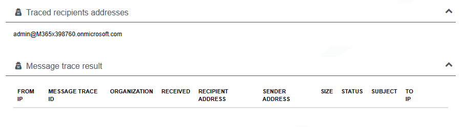…we do not get a result. The Message trace result shows an empty list.
