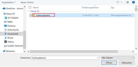 Lade die Zip-Datei “Gettingstarted.zip” hoch.