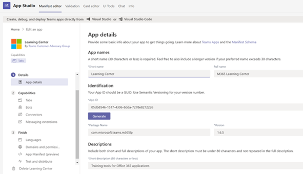 Vergewissere dich, dass die Inhalts-URL im App-Manifest in App Studio wie beschrieben korrekt ist, da sonst die Lernpfade nicht in der Teams Desktop App angezeigt werden