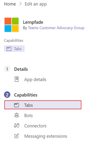 Öffne links im Menüband “Capabilites” und klicke auf “Tabs”.