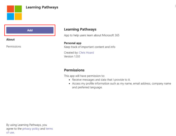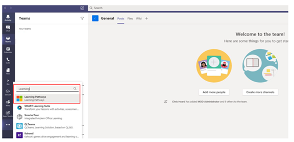 Gratulation! Die Microsoft Lernpfade/Learning Pathways wurden erfolgreich im Microsoft Teams Client eingebunden.