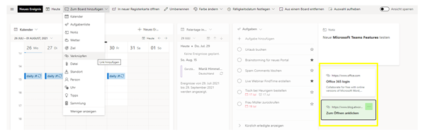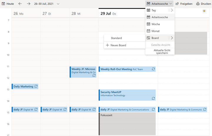 Da der Outlook Kalender ein Teil von Outlook Web ist, kannst du du über outlook.office.com darauf zugreifen. Tipp: versehe die URL outlook.office.com/calendar/view/board mit einem Lesezeichen, um sofort auf das Board zugreifen zu können.