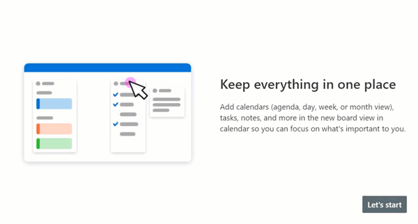 Wenn du die Board-Ansicht zum ersten Mal nutzt, erhältst du von Microsoft eine kurze Information was dich alles mit der Board-Ansicht erwarten wird.