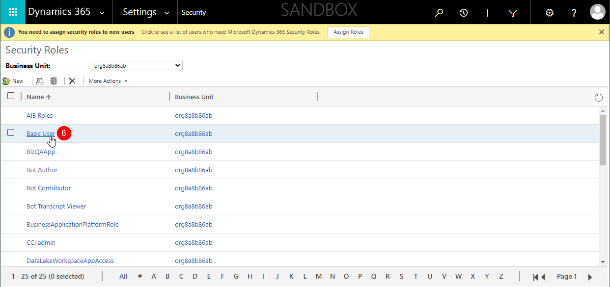 Open the Security Role Basic User. Every user with a license is automatically assigned to that Security Role. This role is for actions in core entities where the user can write, update, and delete records that they created or owned.