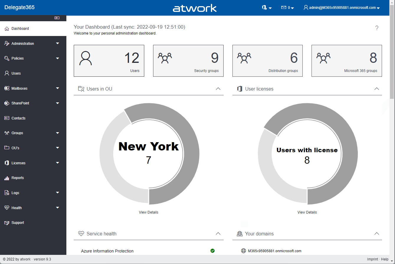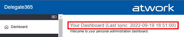 Last sync display on the dashboard page: All Admins can now see the date and time of the last full sync from M365 to Delegate365.