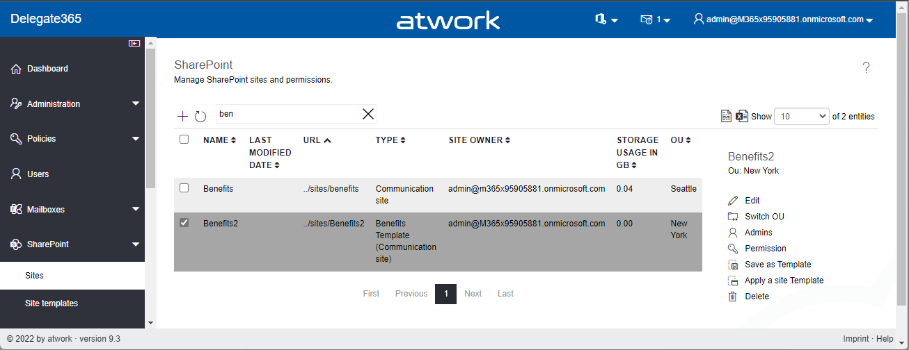 Delegate365 v9.3 comes with a new setup and a bunch of other new features, such as more details, SharePoint site templates, user mailbox Automapping, and more. See a list here.